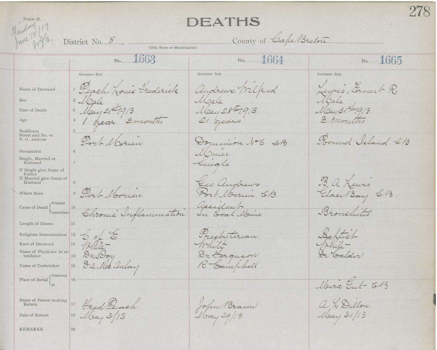 Death Registration: Year: 1913 book: 22 page: 278 number: 1663