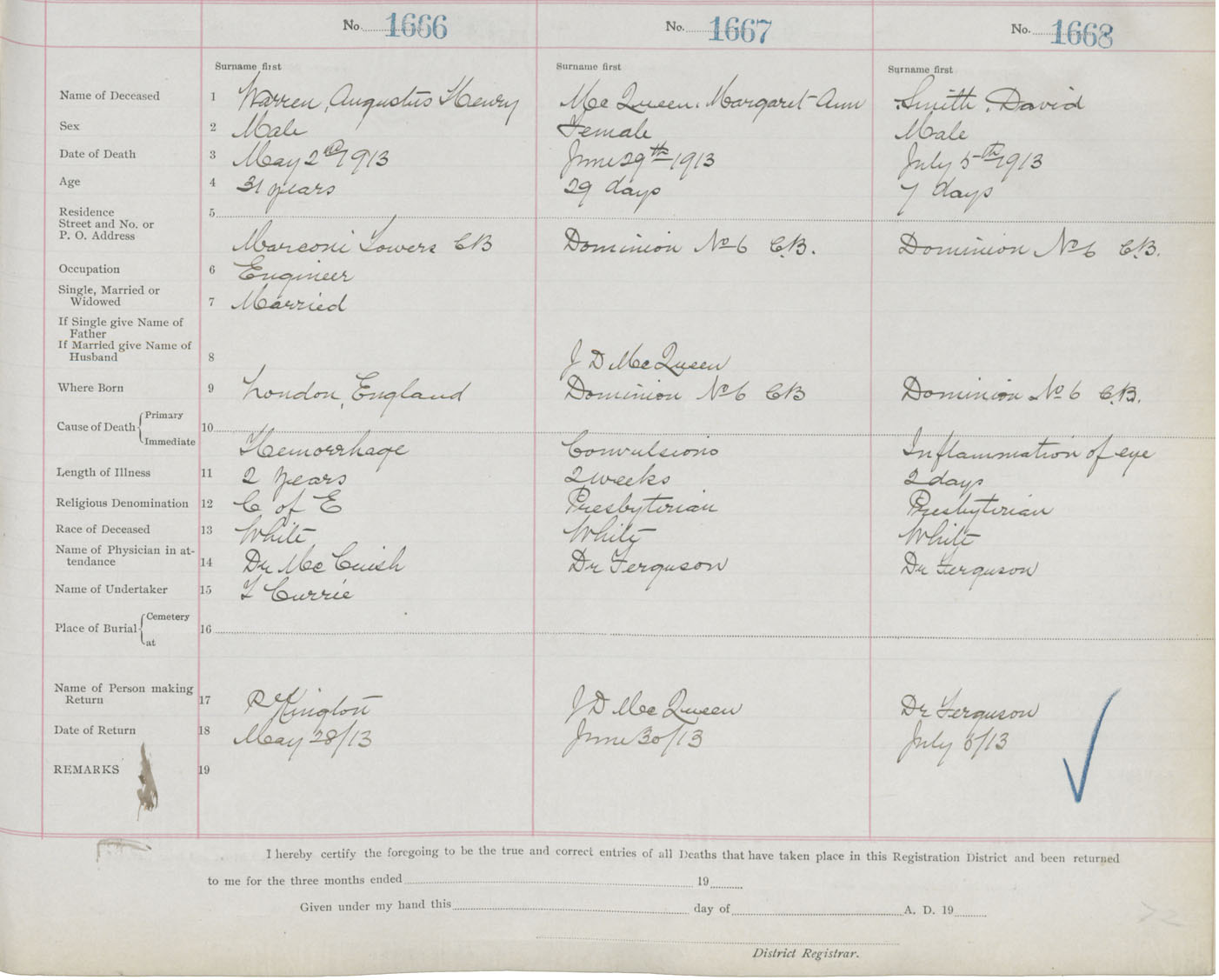 Death Registration: Year: 1913 book: 22 page: 278 number: 1666