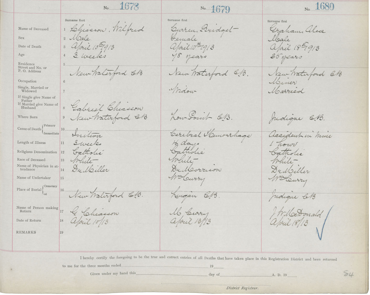 Death Registration: Year: 1913 book: 22 page: 280 number: 1678