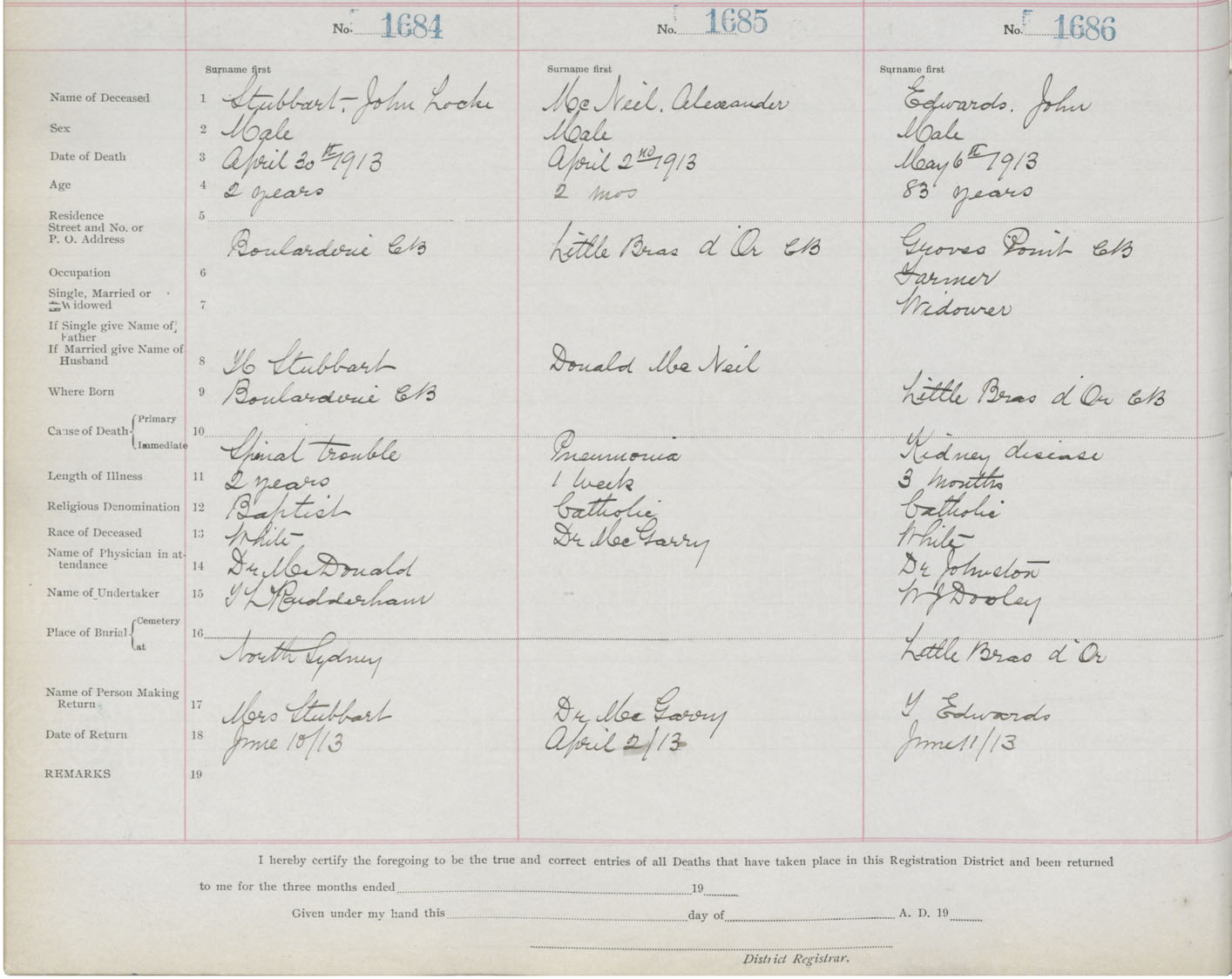 Death Registration: Year: 1913 book: 22 page: 281 number: 1684