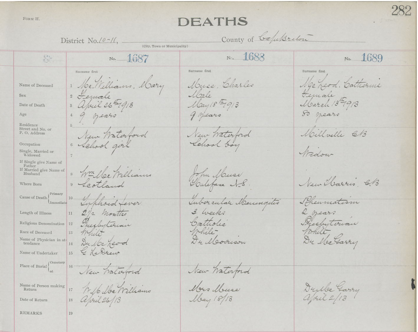 Death Registration: Year: 1913 book: 22 page: 282 number: 1687