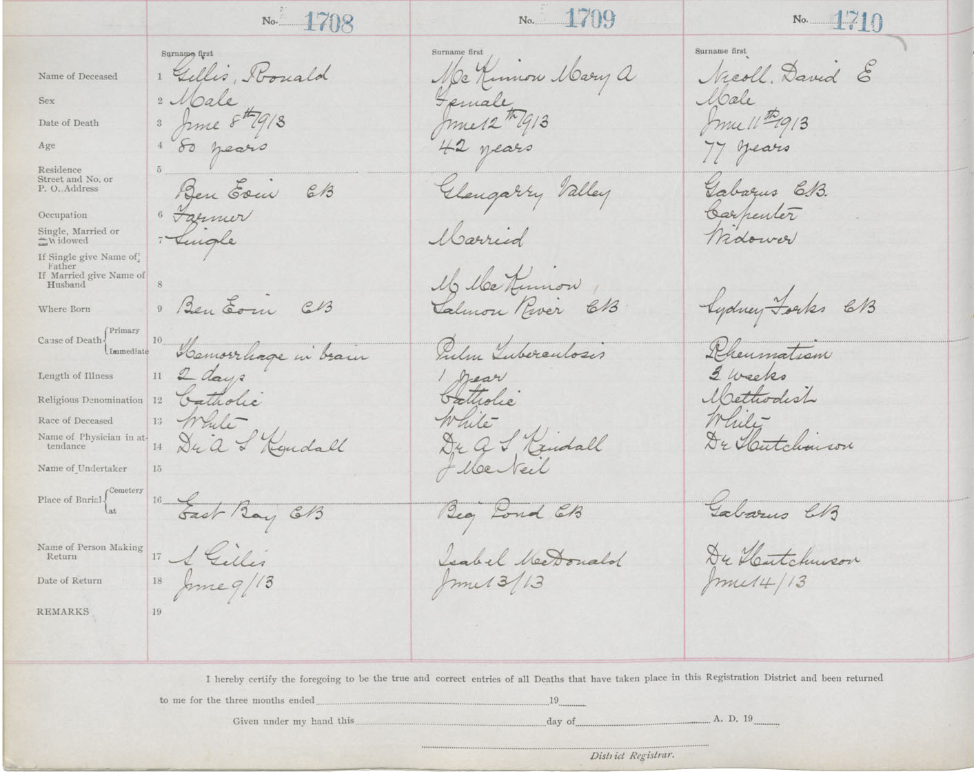 Death Registration: Year: 1913 book: 22 page: 285 number: 1708