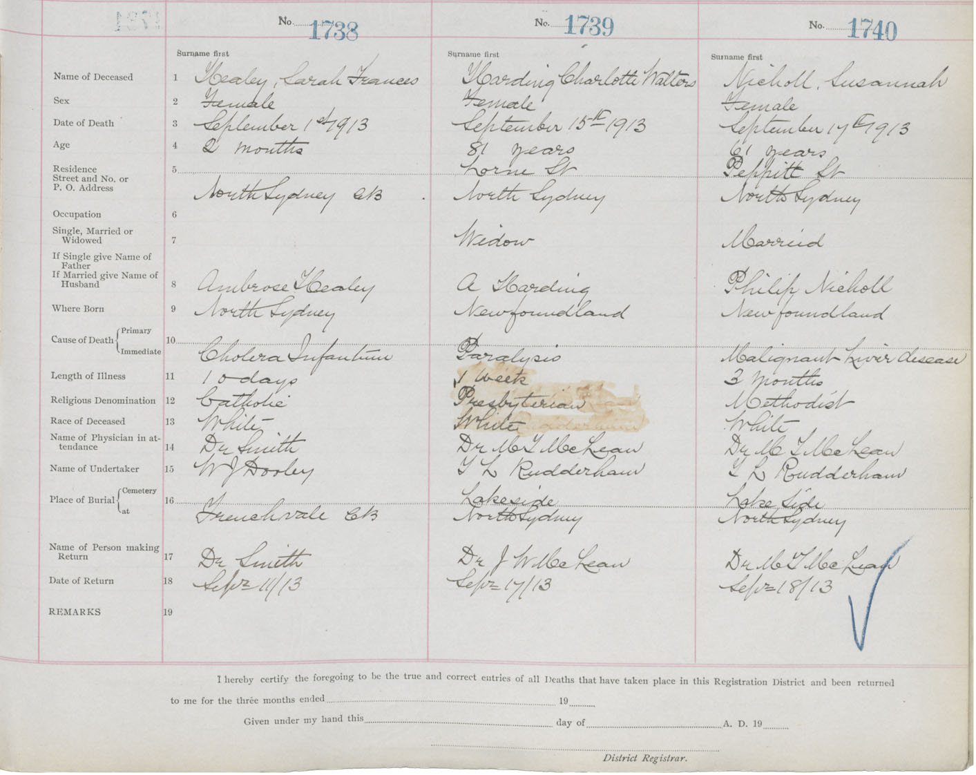 Death Registration: Year: 1913 book: 22 page: 290 number: 1738