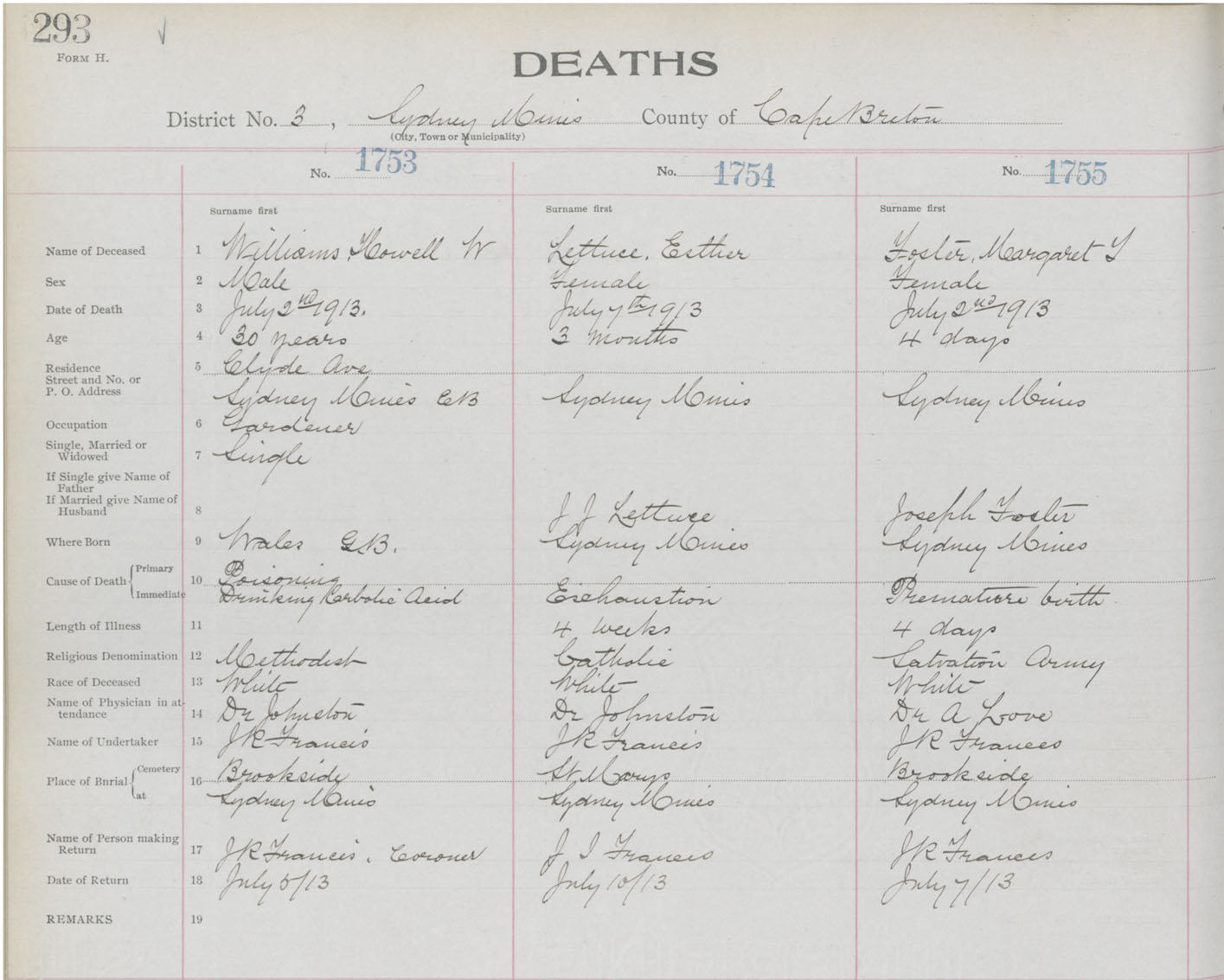Death Registration: Year: 1913 book: 22 page: 293 number: 1753