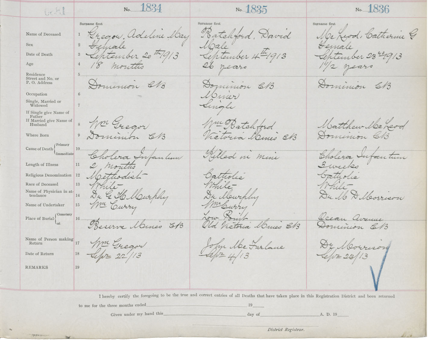 Death Registration: Year: 1913 book: 22 page: 306 number: 1834