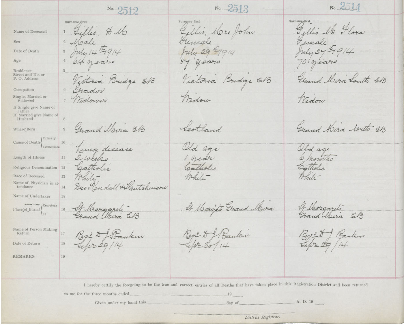 Death Registration: Year: 1914 book: 22 page: 419 number: 2514