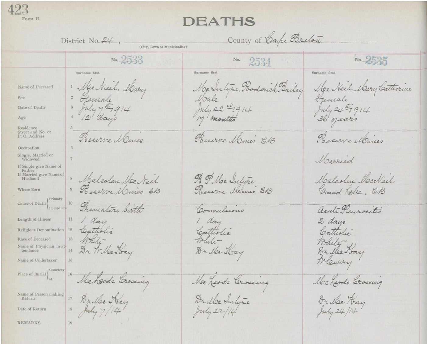 Death Registration: Year: 1914 book: 22 page: 423 number: 2535