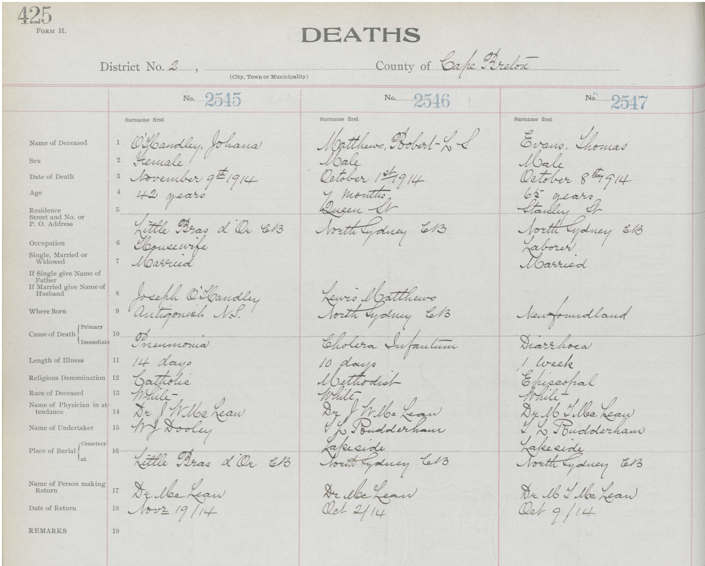 Death Registration: Year: 1914 book: 22 page: 425 number: 2547