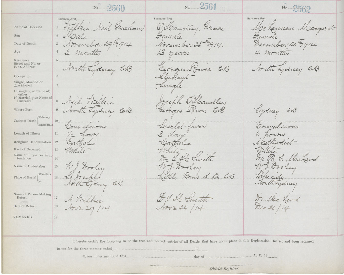 Death Registration: Year: 1914 book: 22 page: 427 number: 2562
