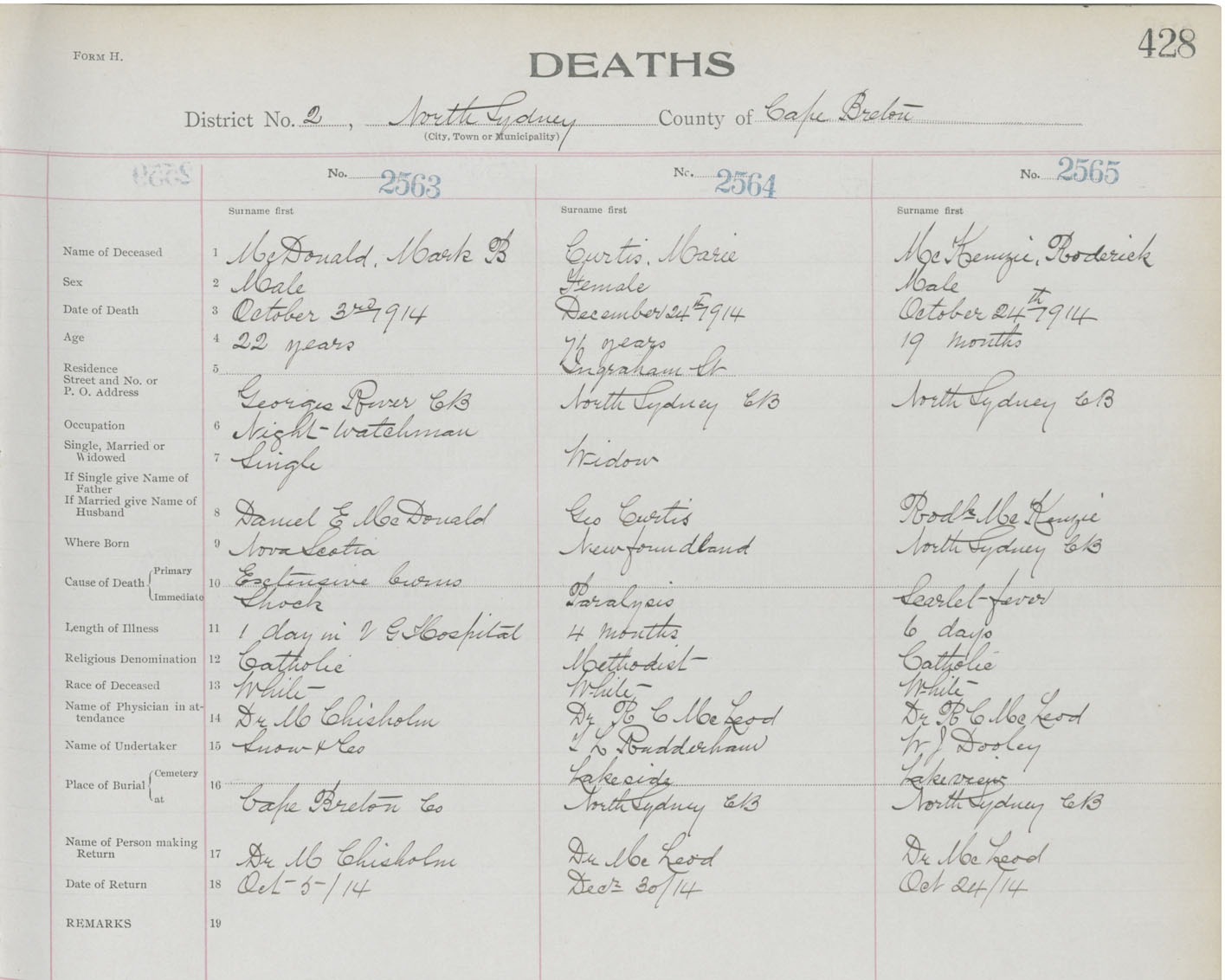 Death Registration: Year: 1914 book: 22 page: 428 number: 2565