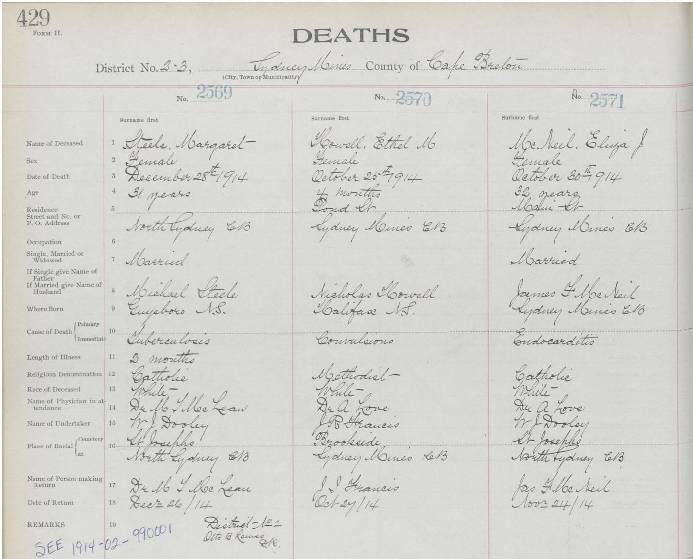 Death Registration: Year: 1914 book: 22 page: 429 number: 2571