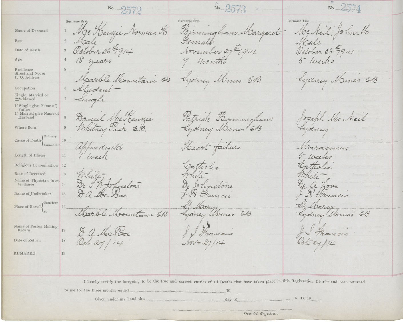 Death Registration: Year: 1914 book: 22 page: 429 number: 2574