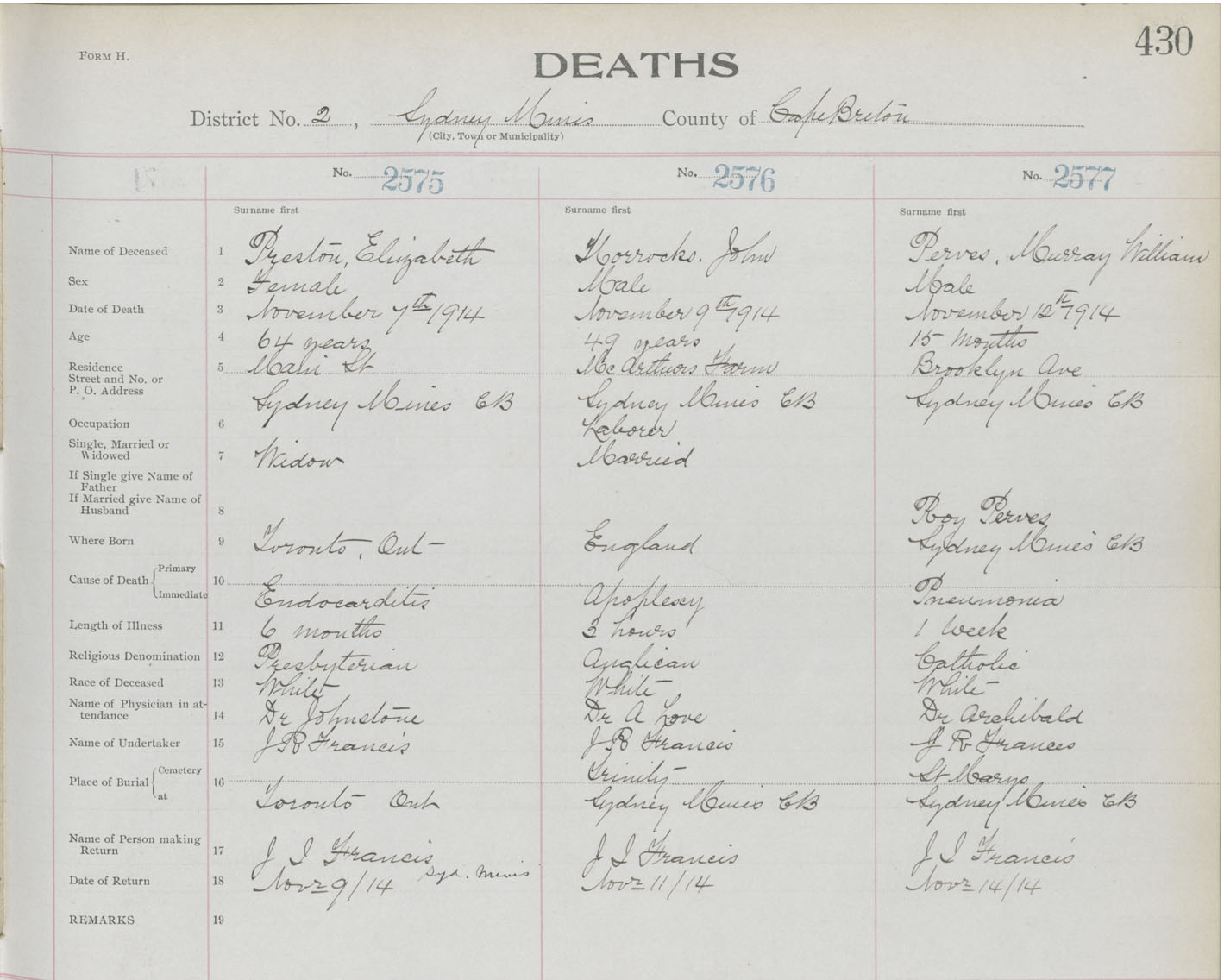 Death Registration: Year: 1914 book: 22 page: 430 number: 2577