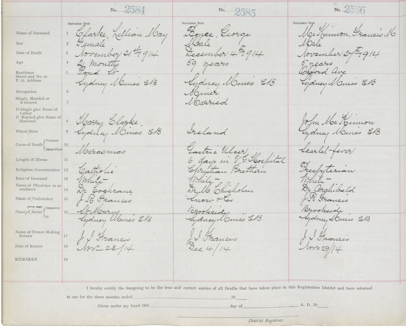 Death Registration: Year: 1914 book: 22 page: 431 number: 2586