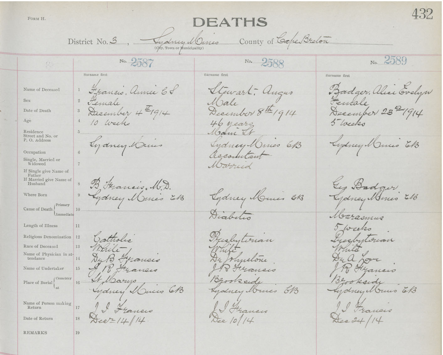 Death Registration: Year: 1914 book: 22 page: 432 number: 2589