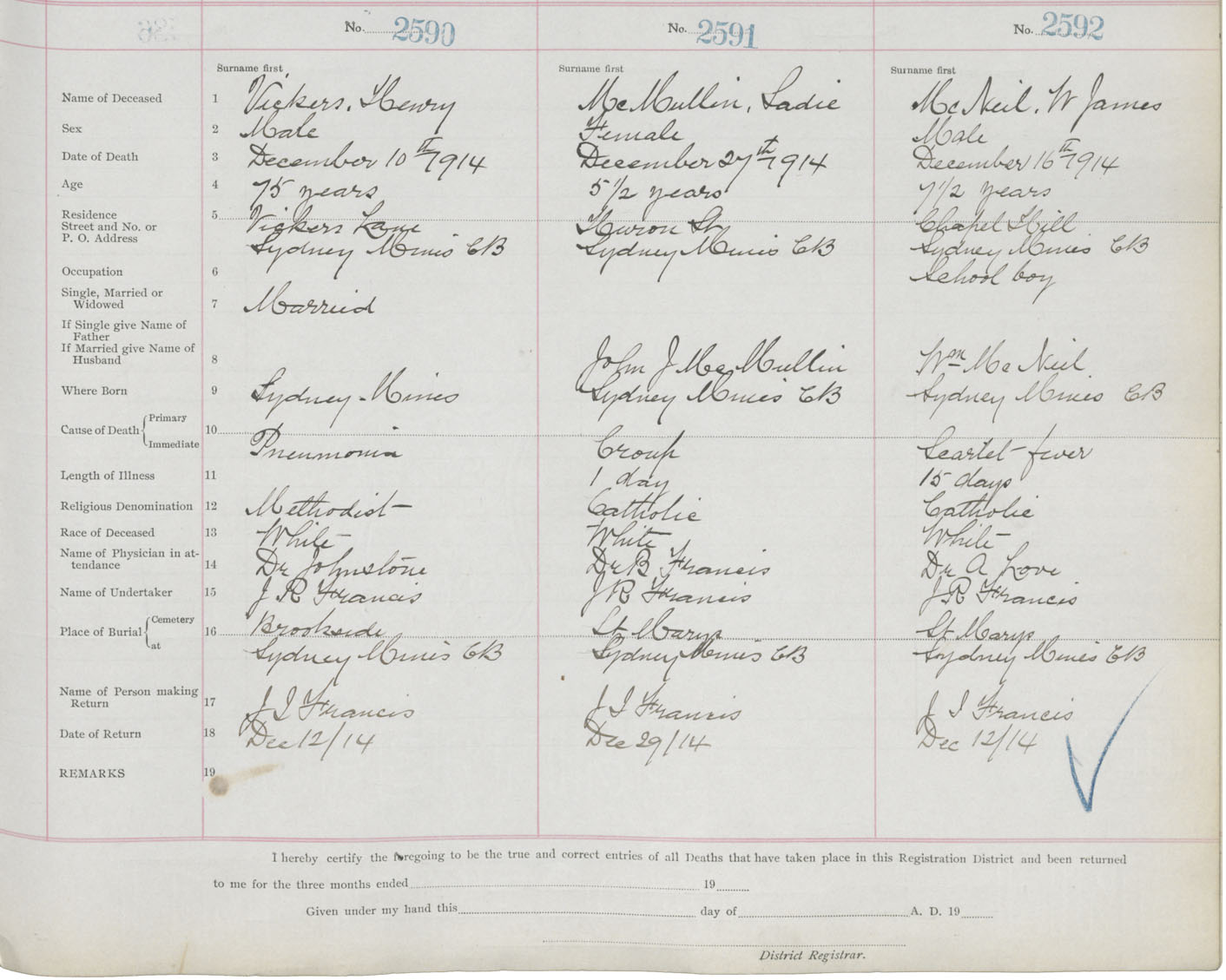 Death Registration: Year: 1914 book: 22 page: 432 number: 2592