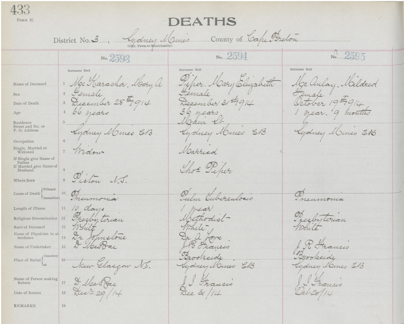 Death Registration: Year: 1914 book: 22 page: 433 number: 2595