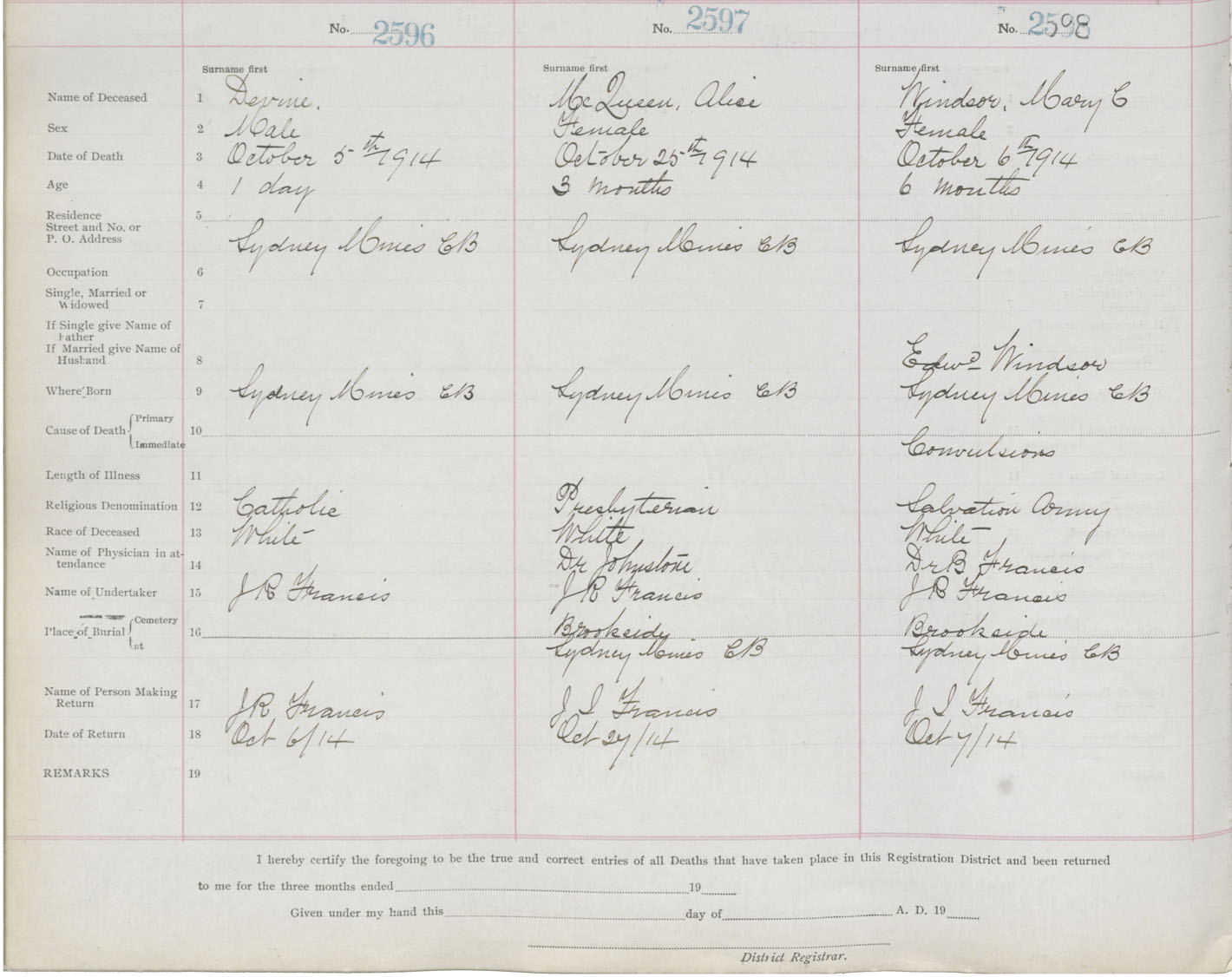 Death Registration: Year: 1914 book: 22 page: 433 number: 2598
