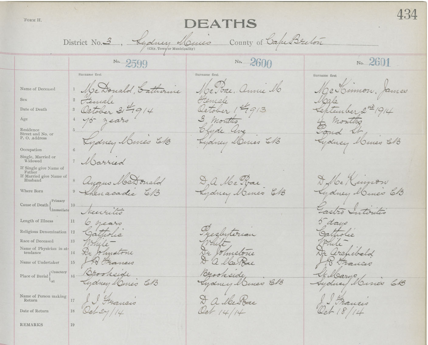 Death Registration: Year: 1914 book: 22 page: 434 number: 2601