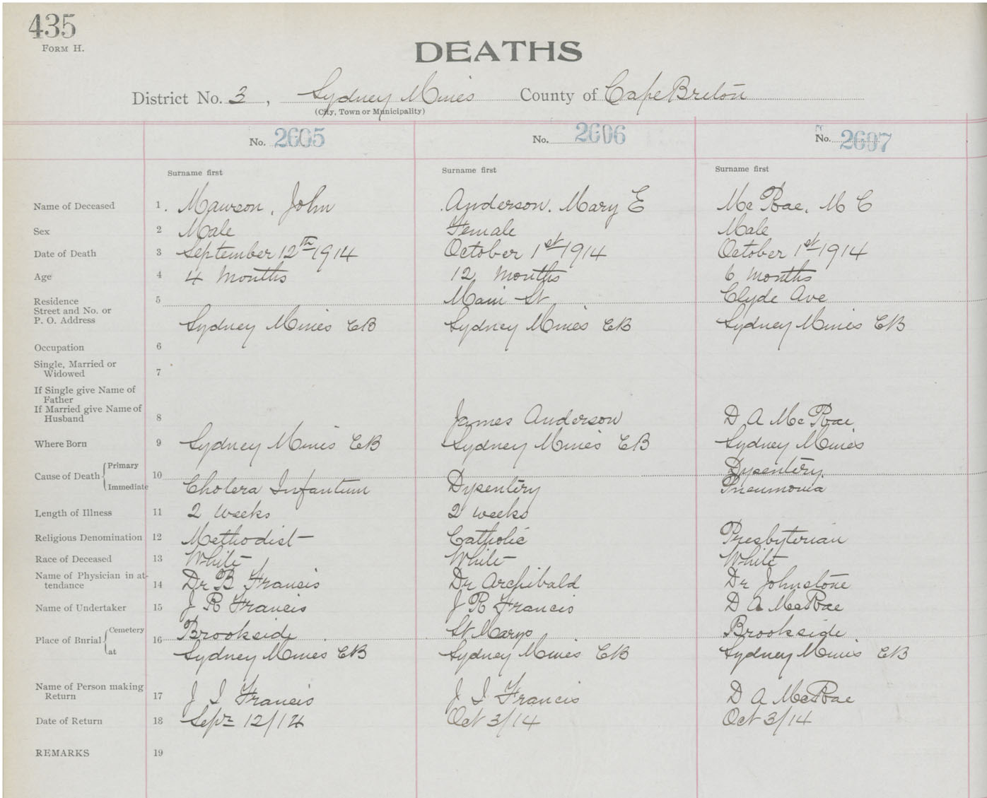 Death Registration: Year: 1914 book: 22 page: 435 number: 2607