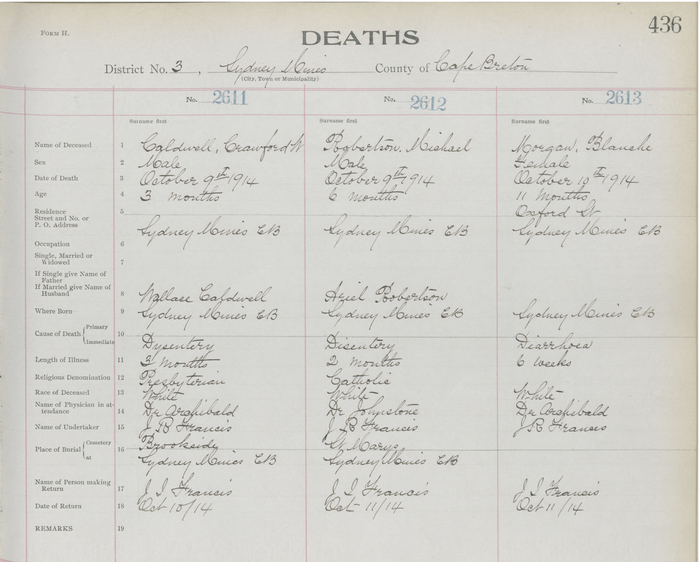 Death Registration: Year: 1914 book: 22 page: 436 number: 2613