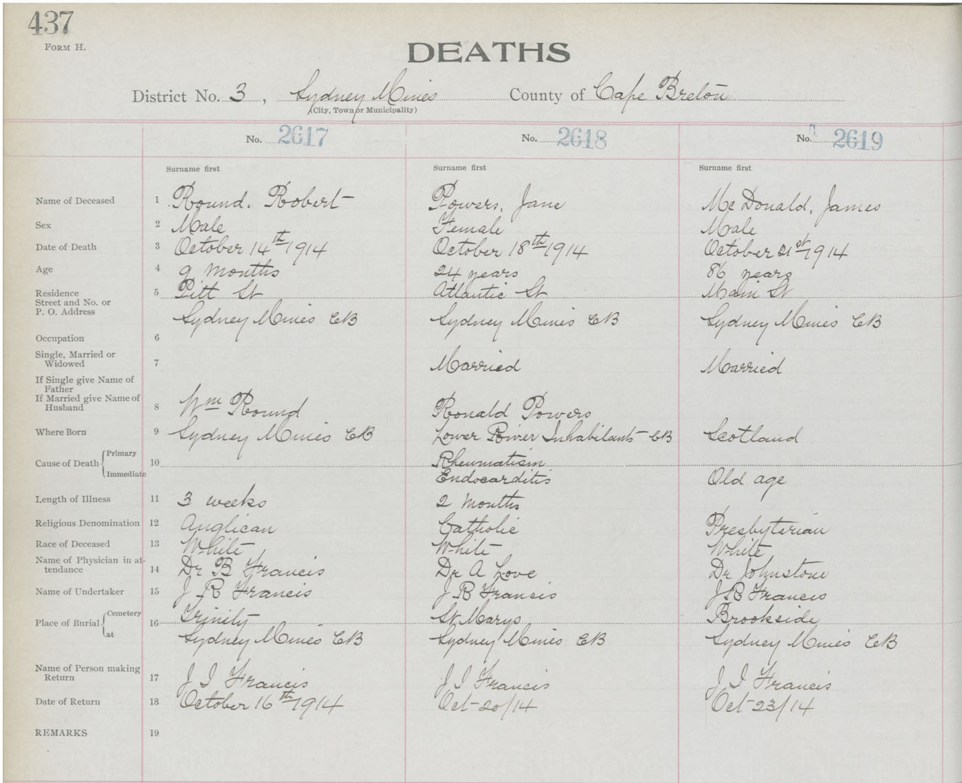 Death Registration: Year: 1914 book: 22 page: 437 number: 2619