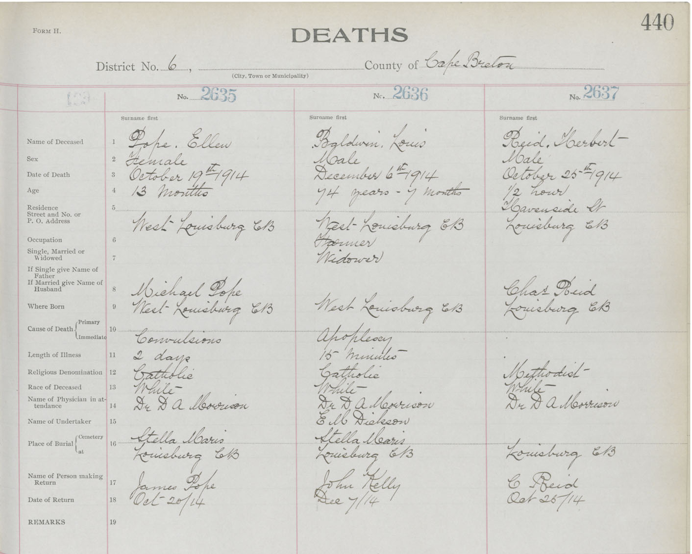 Death Registration: Year: 1914 book: 22 page: 440 number: 2637
