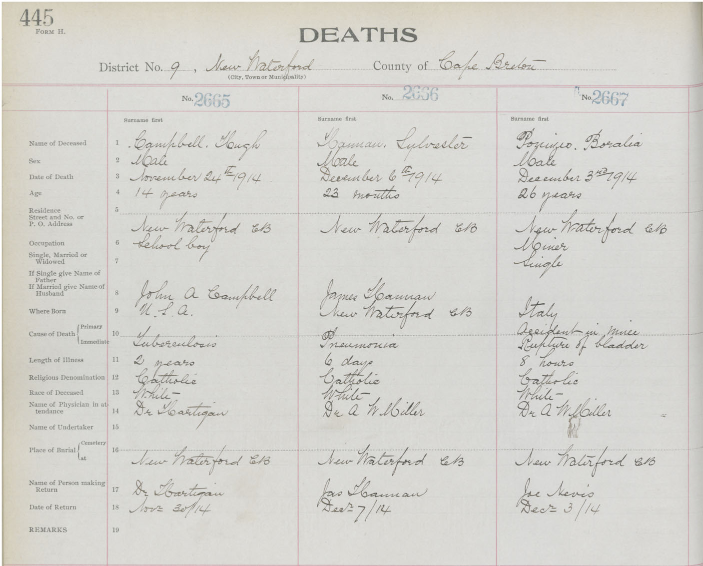 Death Registration: Year: 1914 book: 22 page: 445 number: 2665