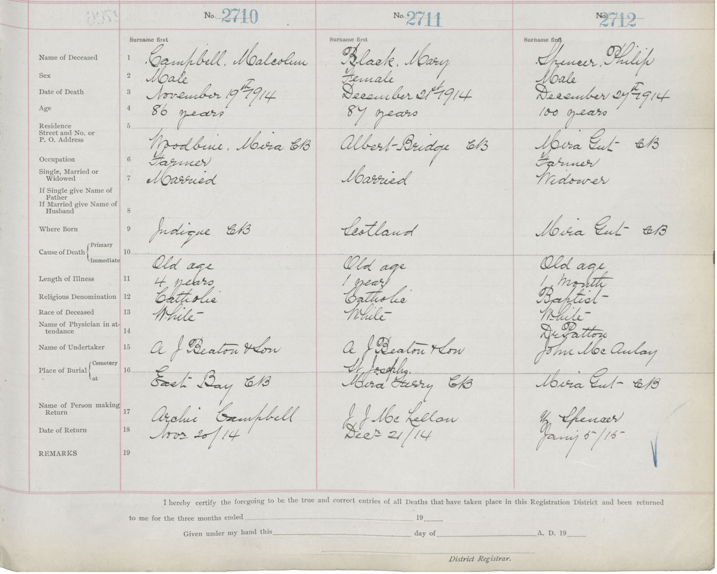 Death Registration: Year: 1914 book: 22 page: 452 number: 2710