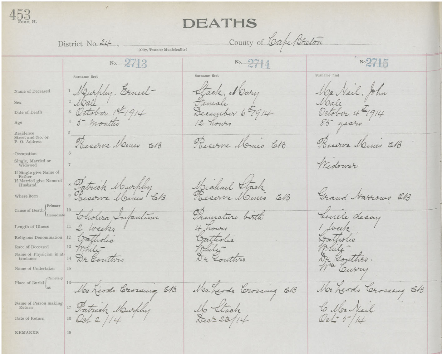Death Registration: Year: 1914 book: 22 page: 453 number: 2713