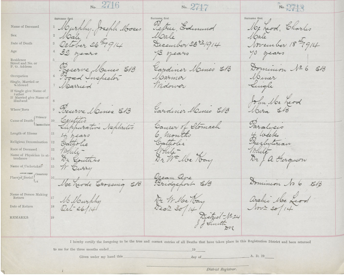 Death Registration: Year: 1914 book: 22 page: 453 number: 2716