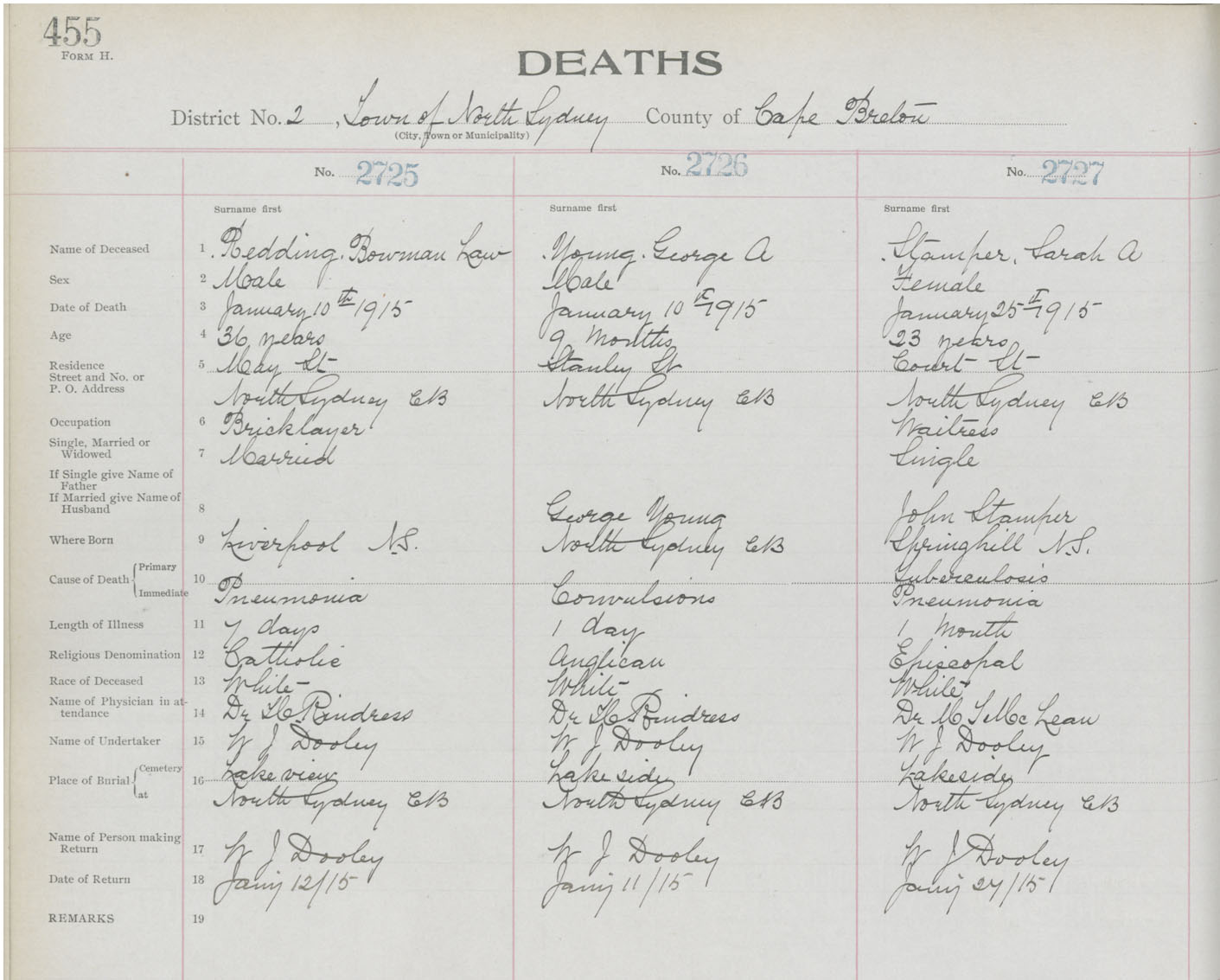 Death Registration: Year: 1915 book: 22 page: 455 number: 2725