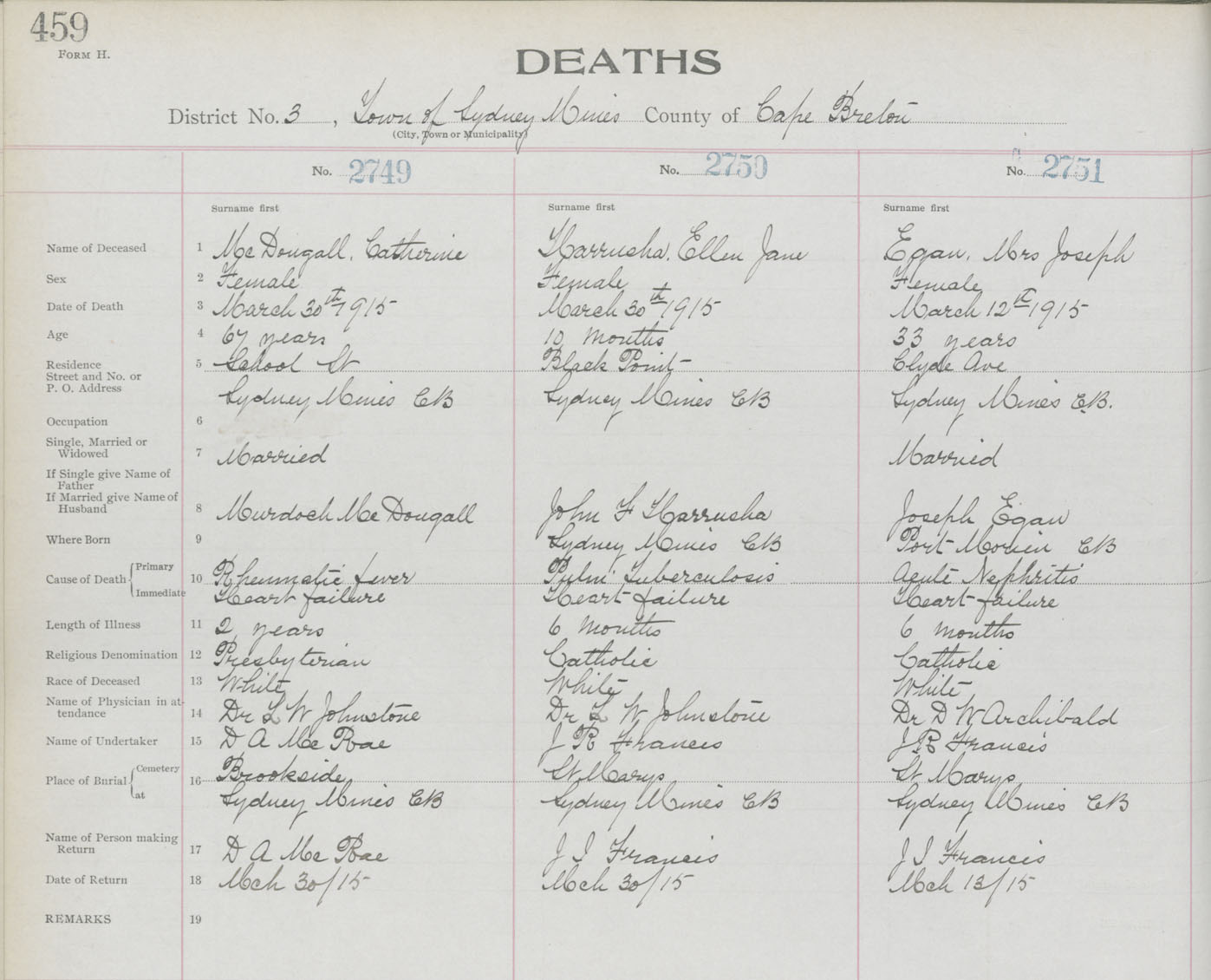 Death Registration: Year: 1914 book: 22 page: 459 number: 2749
