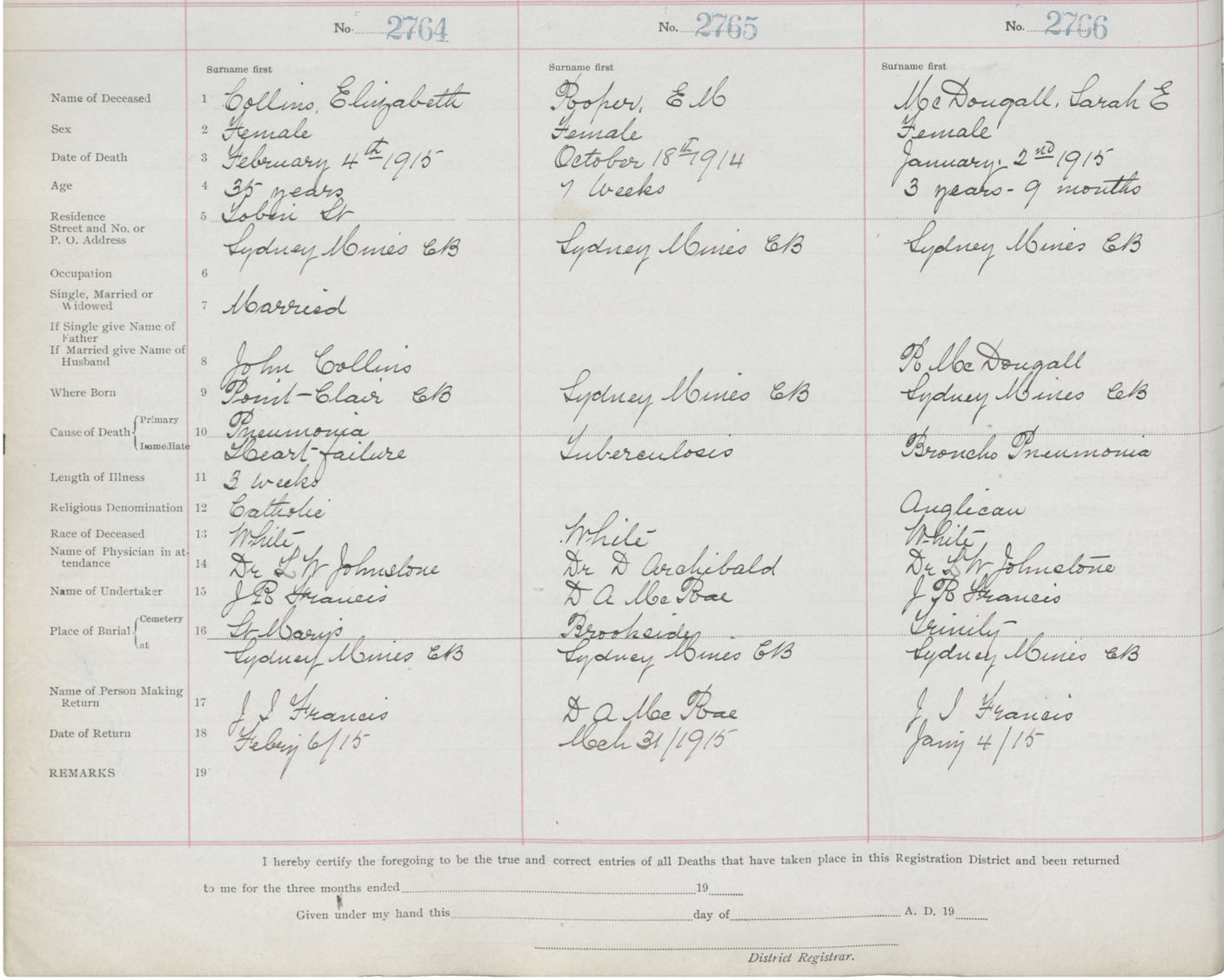Death Registration: Year: 1915 book: 22 page: 461 number: 2764