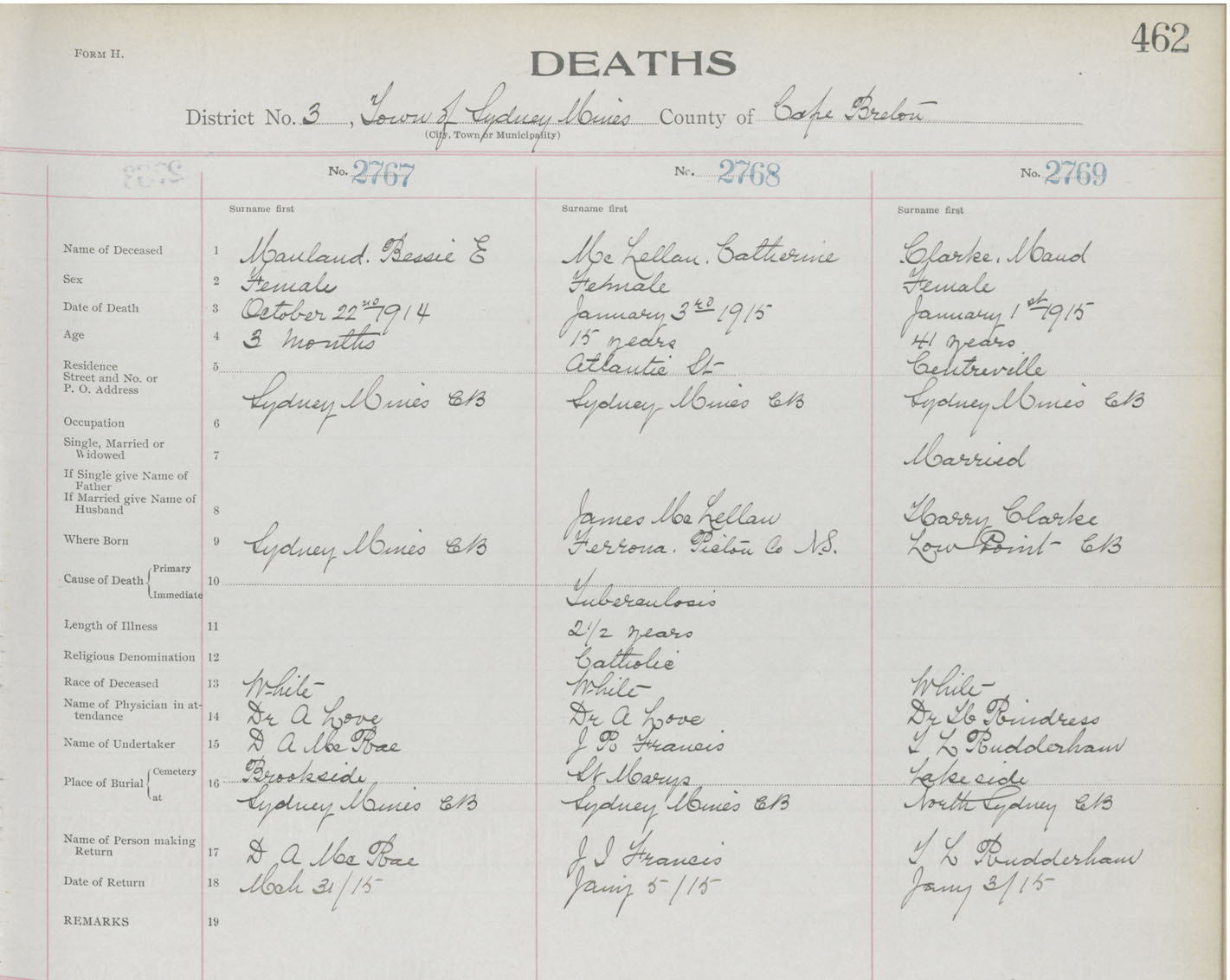 Death Registration: Year: 1915 book: 22 page: 462 number: 2767