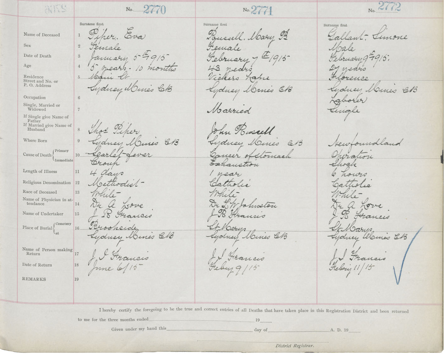 Death Registration: Year: 1915 book: 22 page: 462 number: 2770