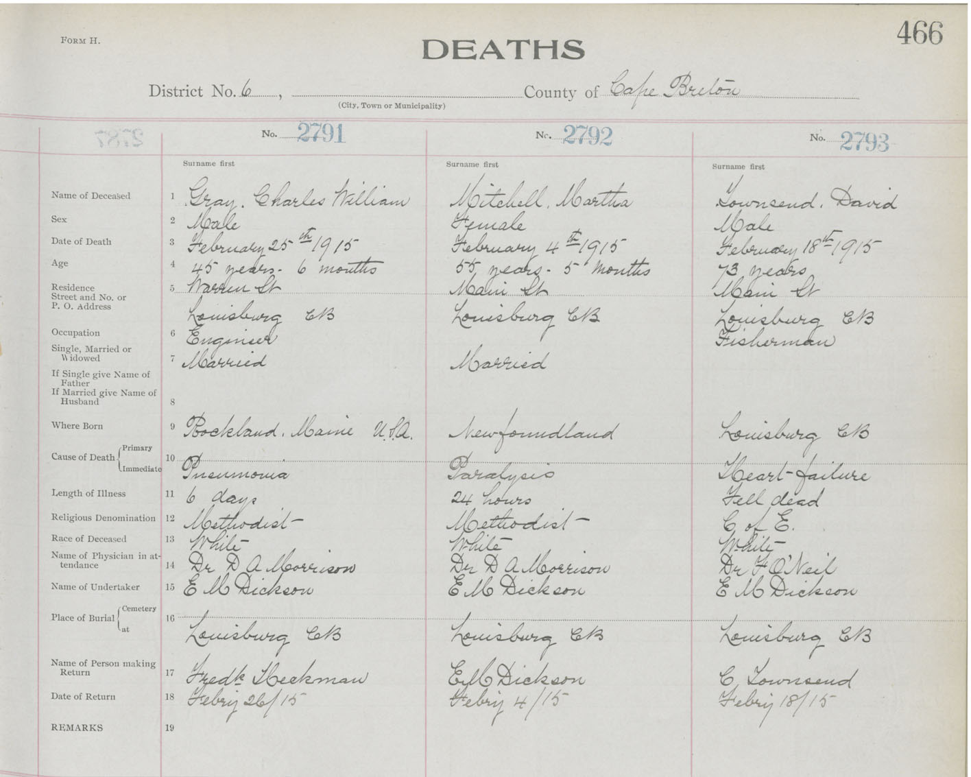 Death Registration: Year: 1915 book: 22 page: 466 number: 2791