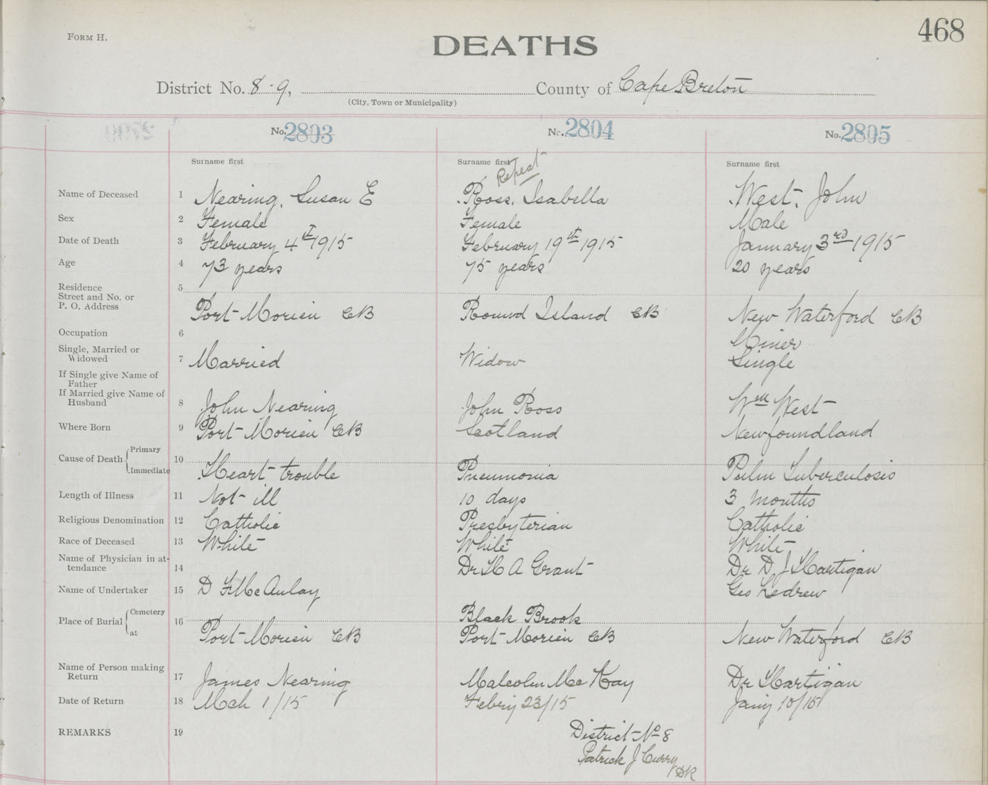 Death Registration: Year: 1914 book: 22 page: 468 number: 2803