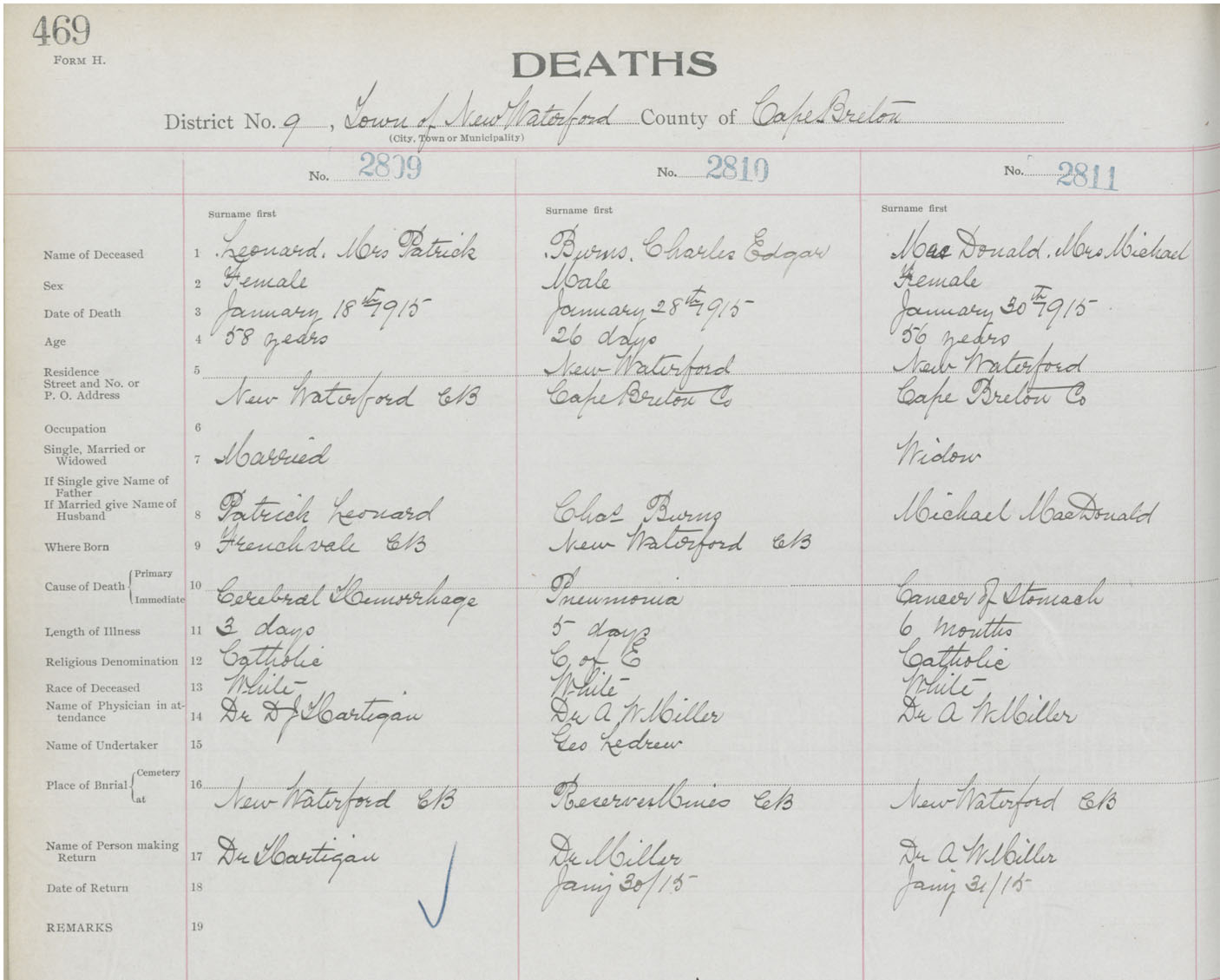 Death Registration: Year: 1915 book: 22 page: 469 number: 2809