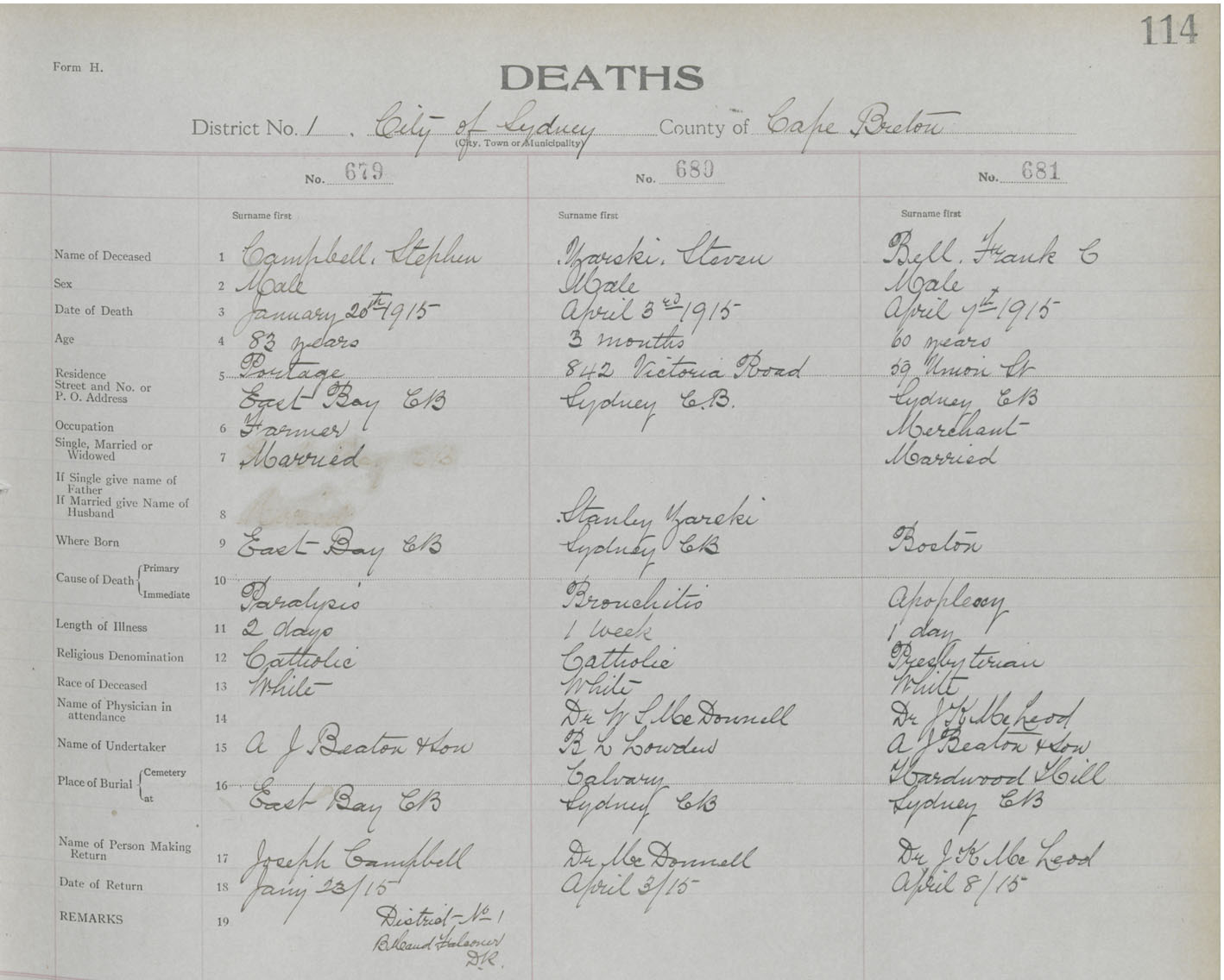 Death Registration: Year: 1915 book: 23 page: 114 number: 681