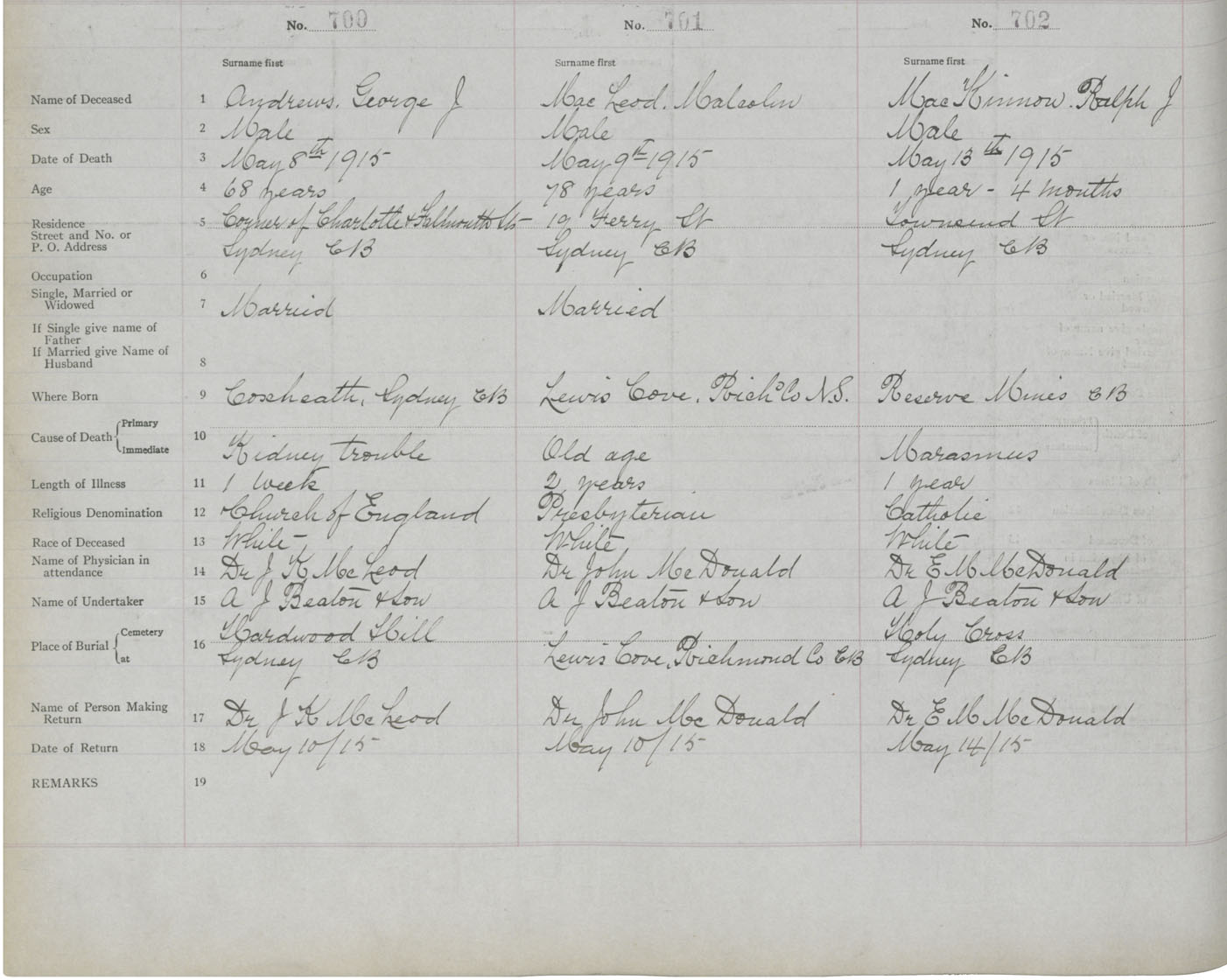 Death Registration: Year: 1915 book: 23 page: 117 number: 702