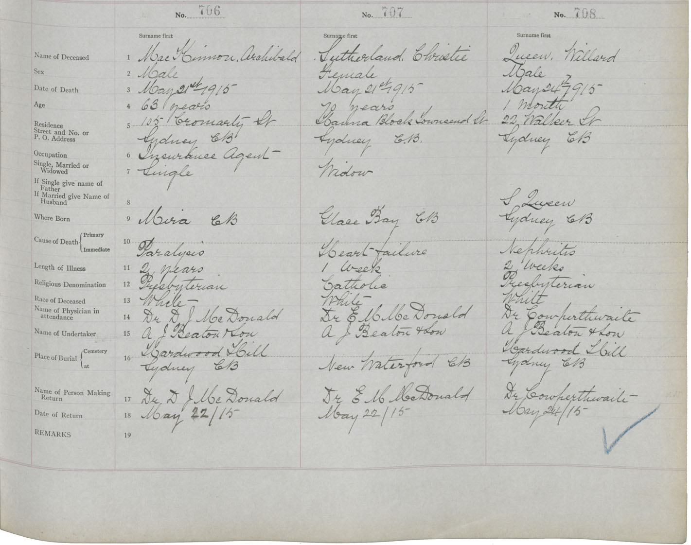 Death Registration: Year: 1915 book: 23 page: 118 number: 708