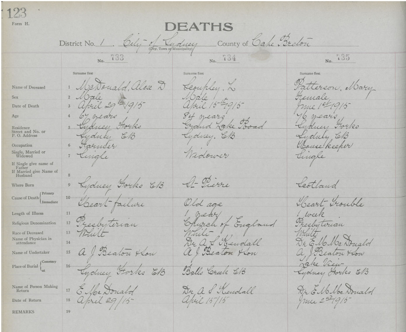 Death Registration: Year: 1915 book: 23 page: 123 number: 735