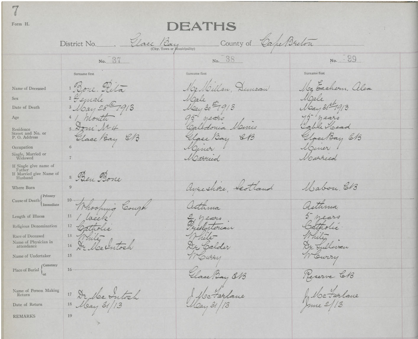 Death Registration: Year: 1913 book: 24 page: 7 number: 39