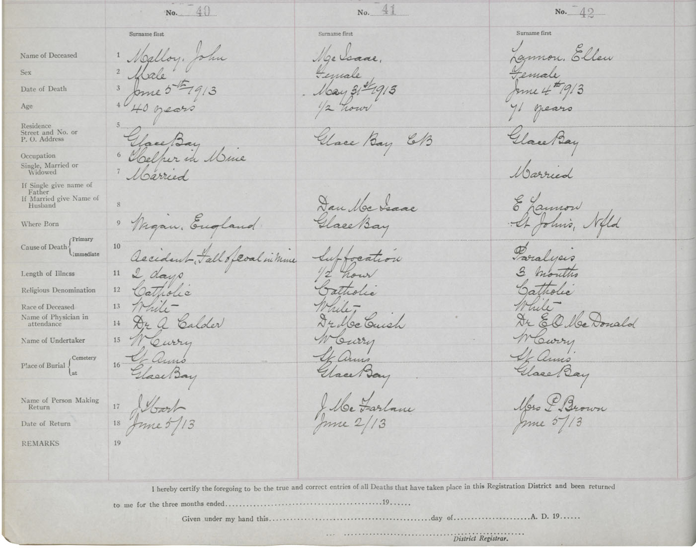 Death Registration: Year: 1913 book: 24 page: 7 number: 42