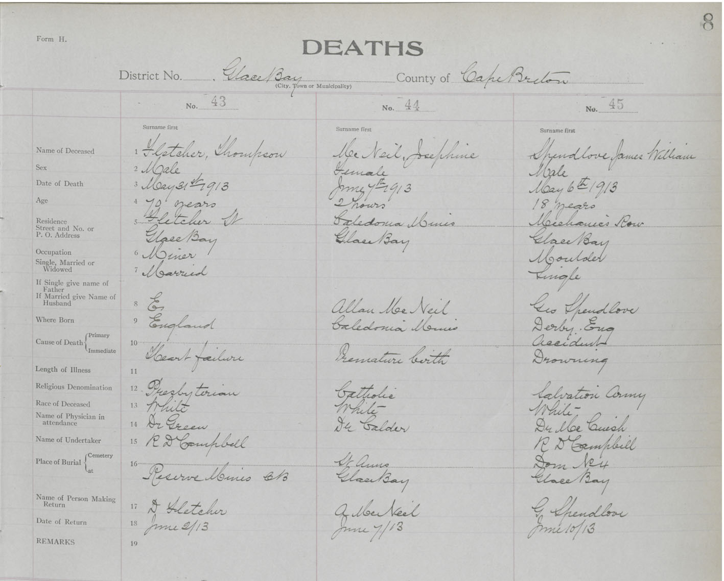 Death Registration: Year: 1913 book: 24 page: 8 number: 45