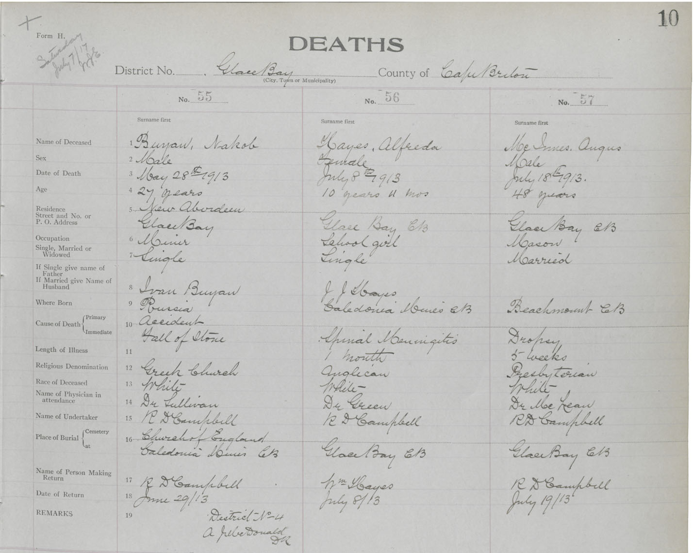 Death Registration: Year: 1913 book: 24 page: 10 number: 57