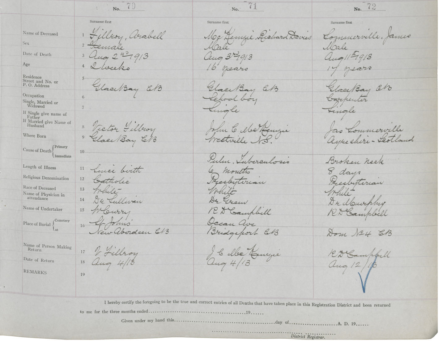 Death Registration: Year: 1913 book: 24 page: 12 number: 72