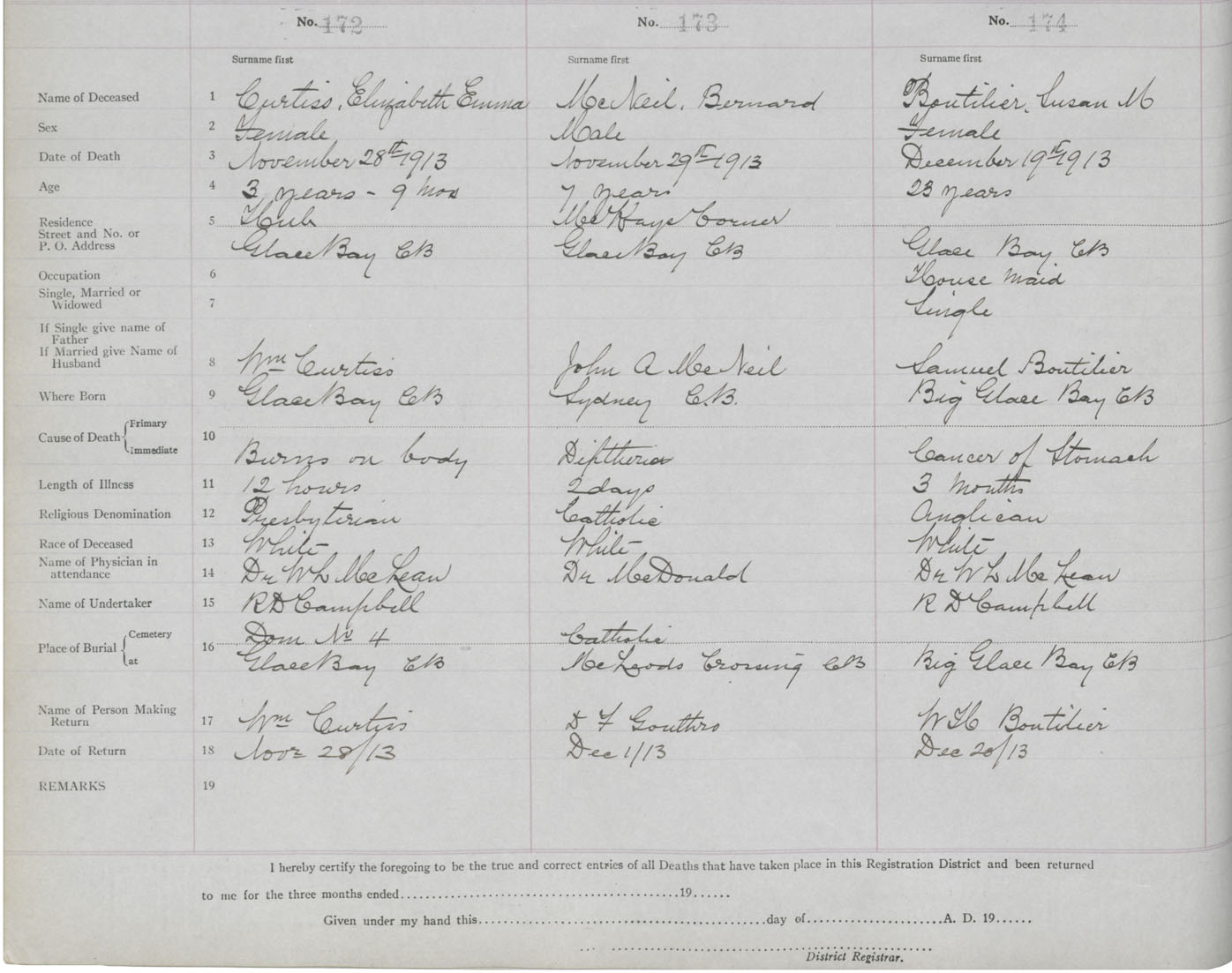 Death Registration: Year: 1913 book: 24 page: 29 number: 172