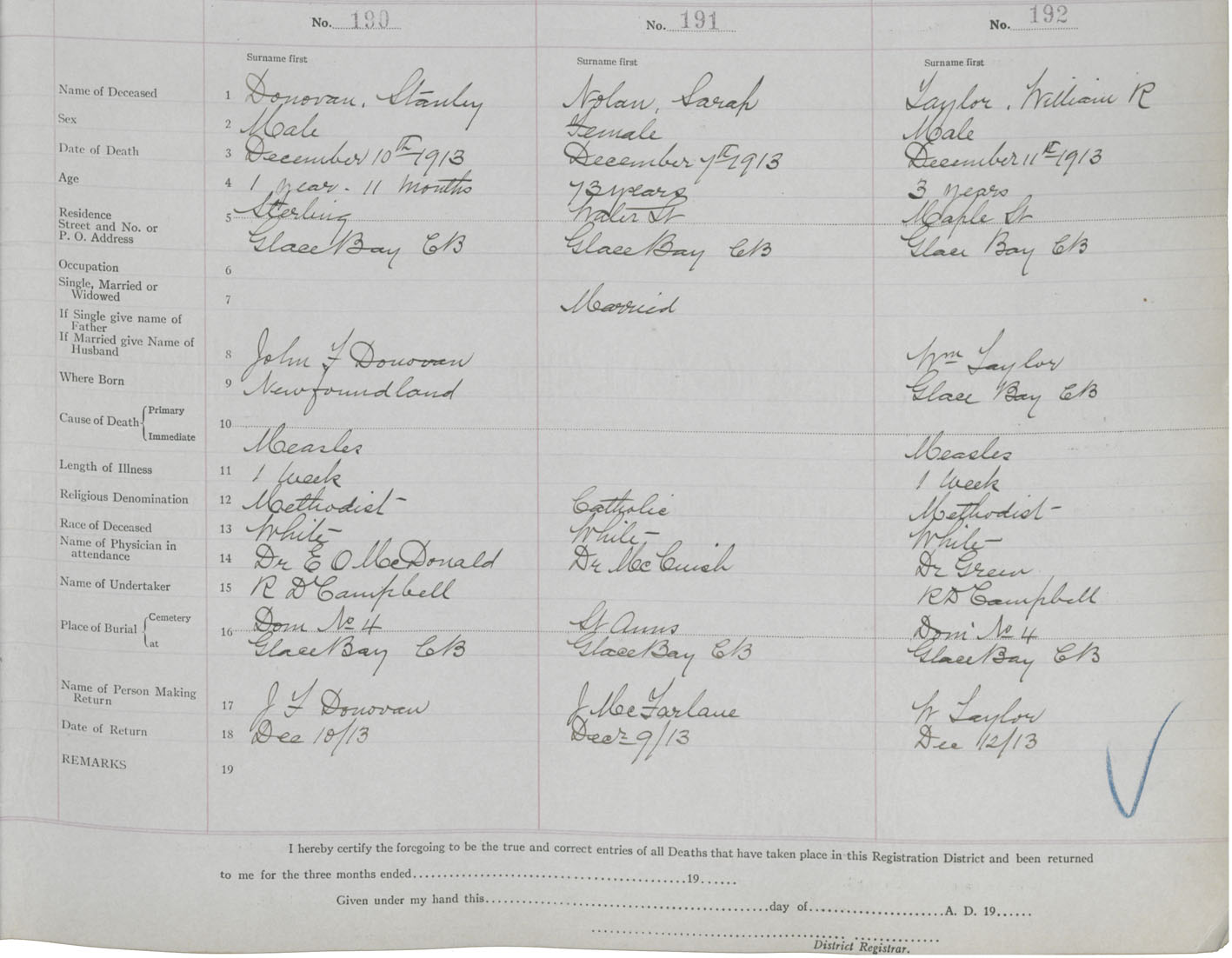 Death Registration: Year: 1913 book: 24 page: 32 number: 190